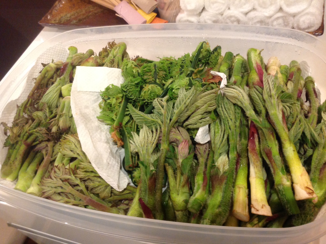 今日は、とり唐揚げのマリネに、たらの芽の酢味噌和え美味しいですよ!
