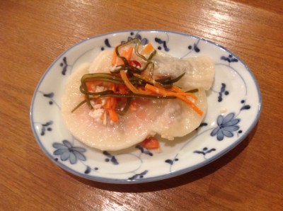 ニシンの切り漬けに紅シャケのはさみ漬け。