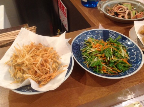 日替わりは、きんぴらごぼう、コゴミの胡麻和え、イカのたらこ和えなどあります!