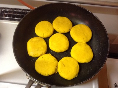 冬至にはかぼちゃを食べると言うことで、お通しでかぼちゃ団子をお出しします!