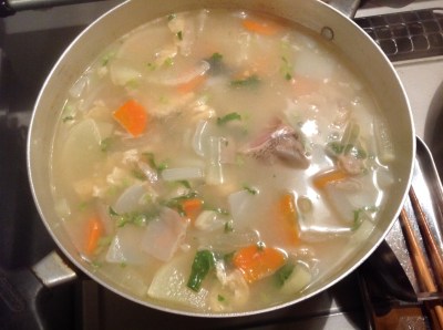 今日は、あったか粕汁を作っております。