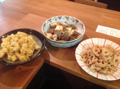 さてさて今日は、ピーマンとベーコンの春巻き、サツマイモのサラダ、厚揚げとコンニャクの味噌炒めなどです。