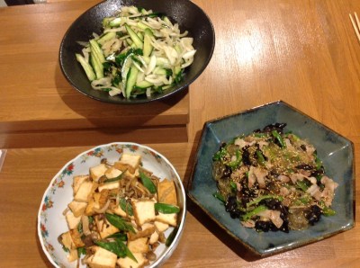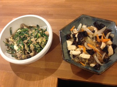 味見を母さんに任せて、今日は春雨の中華風炒め、手羽先の甘辛煮、ニラと舞茸の卵とじなどでございます!