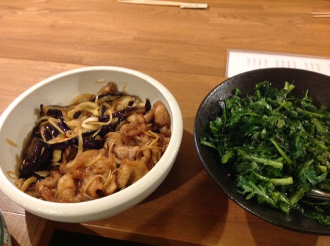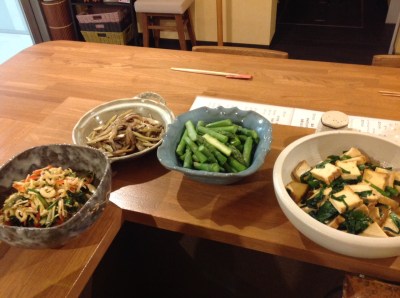 厚揚げの味噌炒め、ほうれん草の海苔和え、ナスと豚肉の揚げ浸しなどもございます。