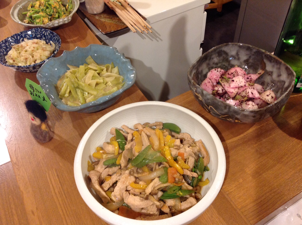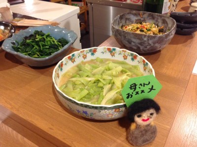 他にも、手作りシュウマイ、豚肉と里芋の炒め煮、セロリの梅肉和え、ほうれん草のおひたしなどなどございます!