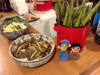 他にも、紅ショウガと豚肉の天ぷら、春雨サラダ、かぶのゆかり和え、ピーマンの肉巻きフライ、ワラビのめんつゆ漬けなどなどございます。