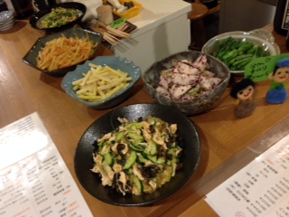 他にも、落葉キノコと茄子の炒め物、はんぺんのチーズフライ、ワラビのめんつゆ漬け、春雨サラダなどなどございます。