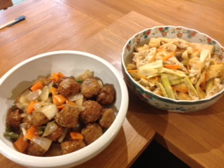 さて今日は、ゴーヤーチャンプルー、ナスとひき肉の味噌炒め、かぼちゃのサラダ、鶏胸肉の醤油煮などでございます。
