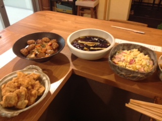 さて今日は、ピーマンの肉詰め、ナスの揚げ浸し、ささぎの油炒め、マカロニサラダ、チキン南蛮、真ガレイの一夜干しなど盛りだくさんです!