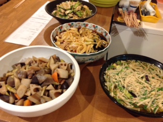 さて今日は、お客様のリクエストにお答えしてけんちん汁と、筑前煮、豚肉の南蛮漬け、ナスのえのきあんかけ、春雨サラダなどなどございます。