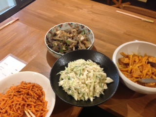 さて今日は、鶏胸肉とジャガイモのコチュジャン炒め、舞茸と厚揚げの煮物、人参のたらこ和え、揚げ納豆、キャベツのシーチキンサラダなどなどございます。