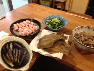 さて今日は、大根と手羽先の煮物、牛肉とごぼうのしぐれ煮、ナスの揚げ浸し、ほうれん草の海苔和え、宗八ガレイの唐揚げなどなどございます。