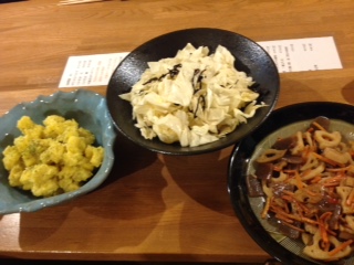 さてさて、更新が遅れましたが、今日は、ナスの肉味噌のせ、つきこんの明太子和え、甘辛ごぼう、サツマイモのサラダなどなどございます。