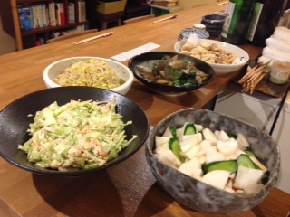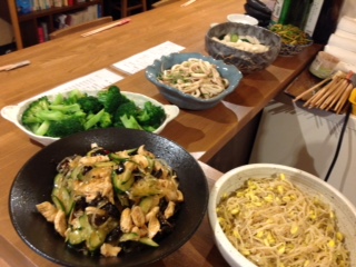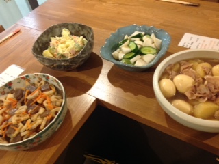さて今日は、けんちん汁、豚肉と白菜のあんかけ炒め、鶏胸肉のしそチーズ焼き、煮物、イカの酢味噌和え、春雨サラダなどでございます。