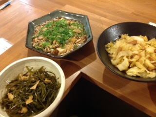 さて今日は、たらのあら汁、イカの酢味噌和え、ヒレカツ、春雨サラダ、もやしのナムル、ニシンと大根の煮物などでございます。