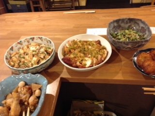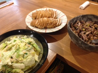 さて今日は、手作りシュウマイ、梅味のちくわ天、アスパラベーコン炒め、厚揚げとピーマンの味噌炒め、キャベツのシーチキンサラダなどでございます。