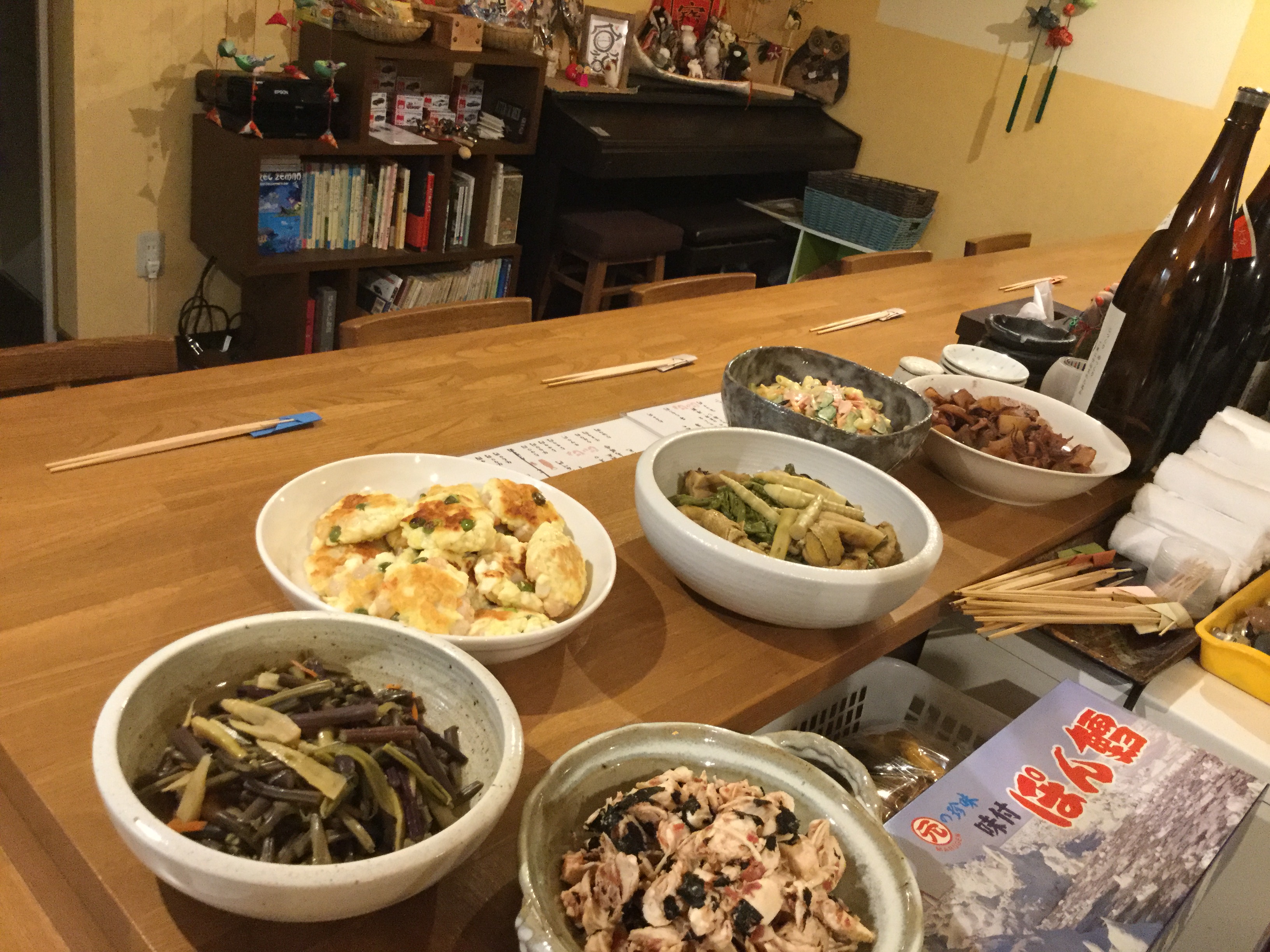さて今日は、手作りコロッケ、手作り春巻き、タケノコの煮物、エビと枝豆入りはんぺんおやき、マカロニサラダ、ささみの梅海苔和え、ワラビの酢の物などでございます。