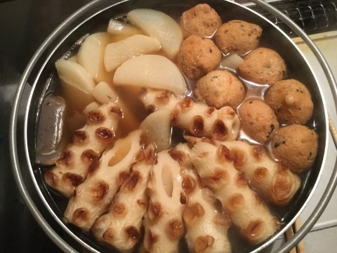 今日は、おでん盛り、チーズトンカツ、高野豆腐の豚肉巻き煮、タコの酢味噌和え、エビとブロッコリーのマヨネーズ和え、ゴボウの梅煮、長芋の味噌漬けなどでございます。