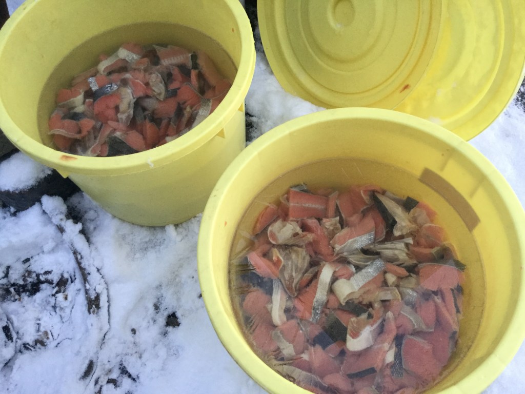 樽に野菜、魚、酢水、麹ご飯、生姜、野菜、塩を繰り返し、鮭とアジとで4樽漬け込みました!