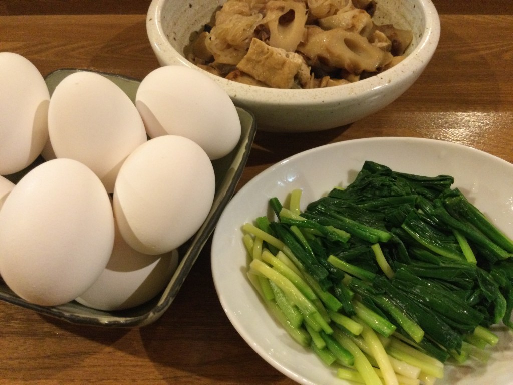 今日は豚バラ大根、エビニラ揚げ餃子、ハマボウフウの明太海苔和え、焼きそばなど用意しています。