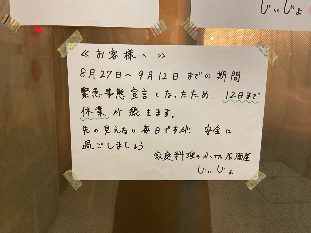第三者認証制度の認証点は8時までお酒が提供でき、9時まで営業できますが、だいぶ前に申請していますが全く音沙汰なしですので、残念ながらじぃじょは8時までです。