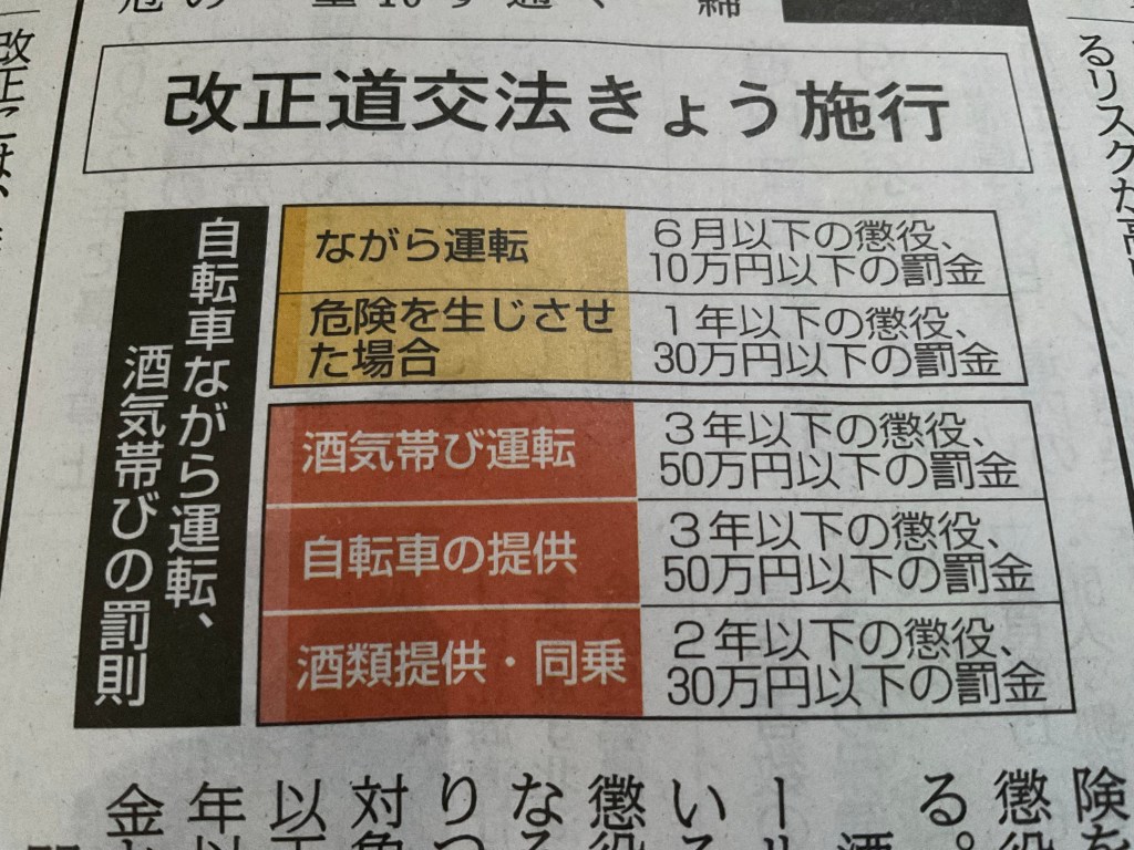 今日から自転車の罰則が強化されます。