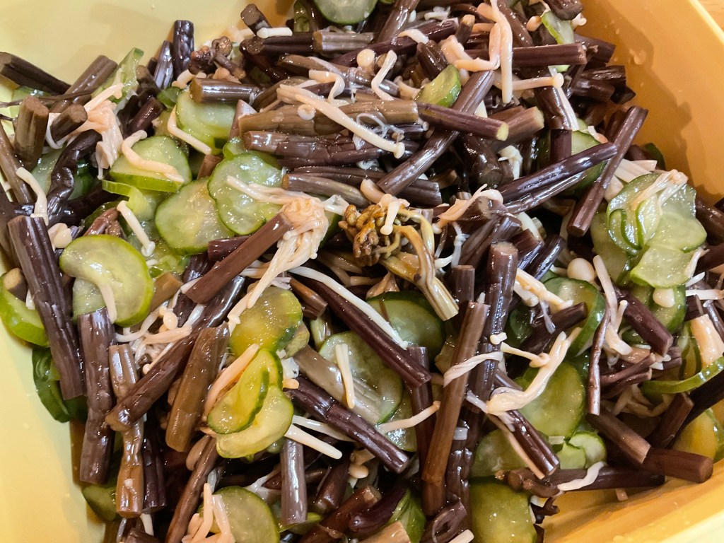 今日は山菜の煮しめ、手作りシュウマイ、牛肉のしぐれ煮、豆腐のあんかけ汁、わらびの酢の物、切り昆布の煮物などございます。