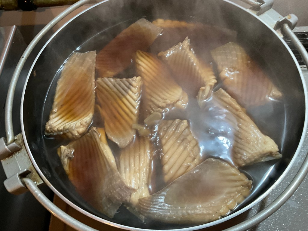今日は大根と車麩とちくわのさっぱり煮、ネギと切り昆布の炒め煮、カブときゅうりの浅漬け、手羽元の塩スープ煮、キャベツと厚揚げとちくわの油炒め、2日目のカレーなどございます。