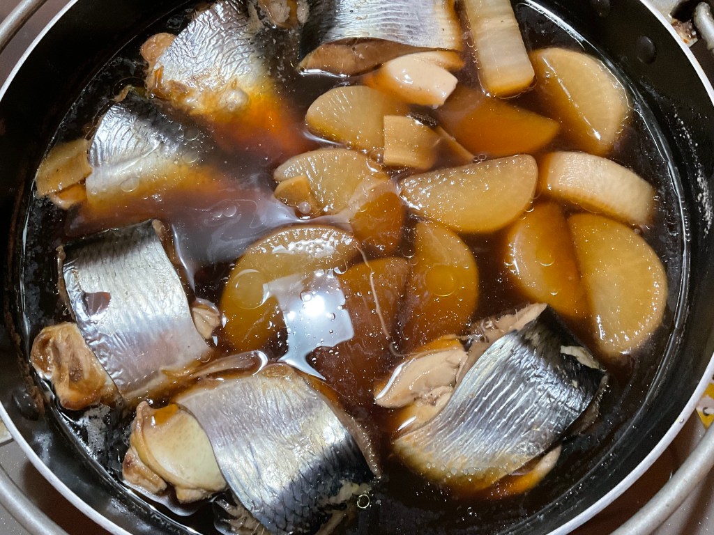 今日はニシンの煮付け、にんじんとピーマンのきんぴら、マカロニサラダ、海苔ちくわ天などございます。