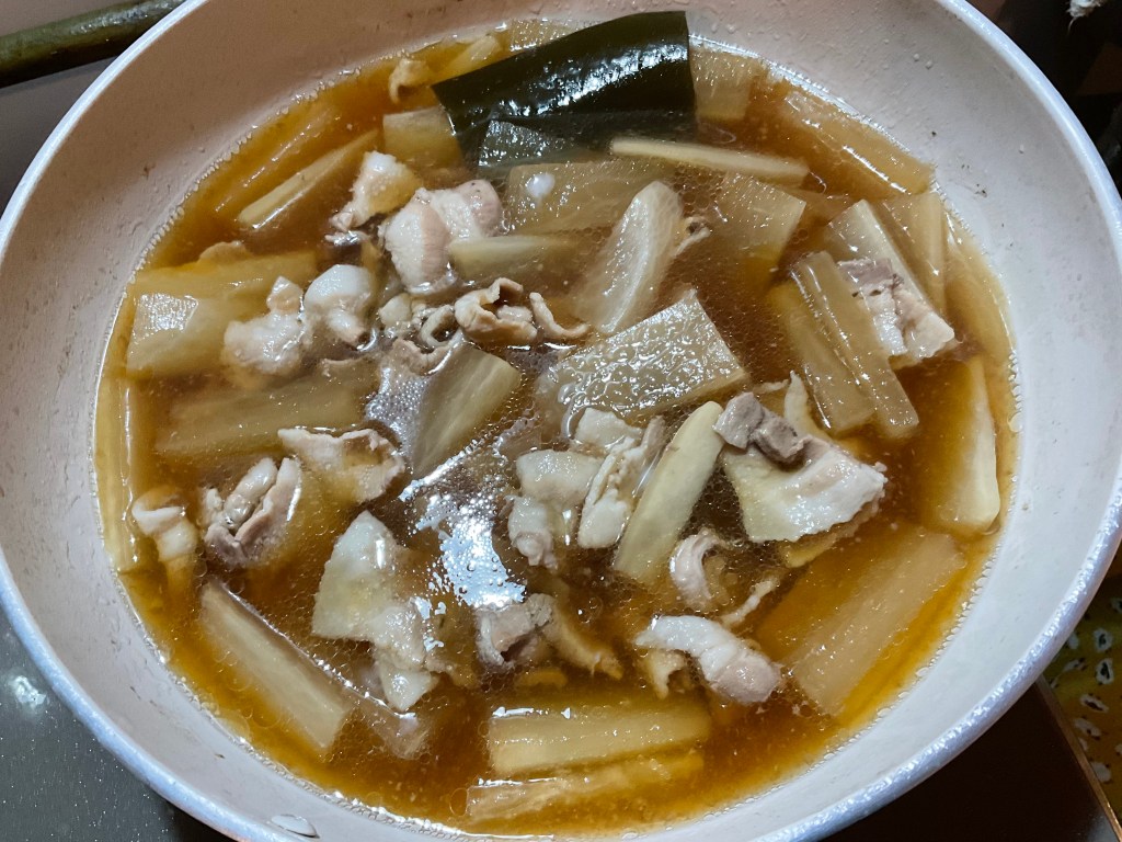 今日はチーズ鶏ハムカツ、豚バラ大根、ほうれん草と生ちくわの海苔和え、セロリときゅうりの浅漬け、ナス焼き、ブロッコリーのピーナッツ和えなどございます。